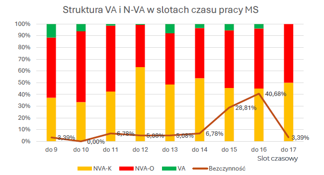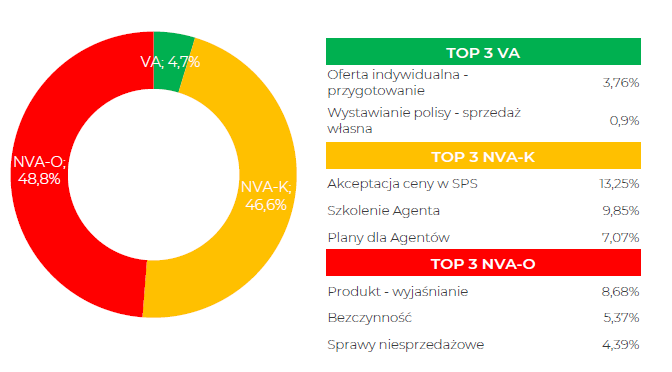 Obserwowaliśmy rzeczywistą pracę menedżerów i specjalistów w 69% oddziałów regionalnych. Badanie pozwoliło dokładnie wskazać, które czynności generują wartość, a które stanowią marnotrawstwo.